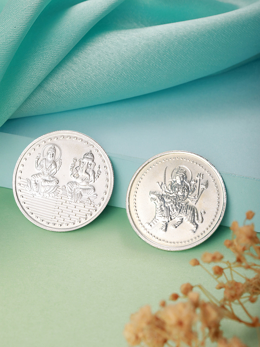 • Set of 2 Pure Silver Coins – Laxmi Ganesh & Maa Sherawali Designs