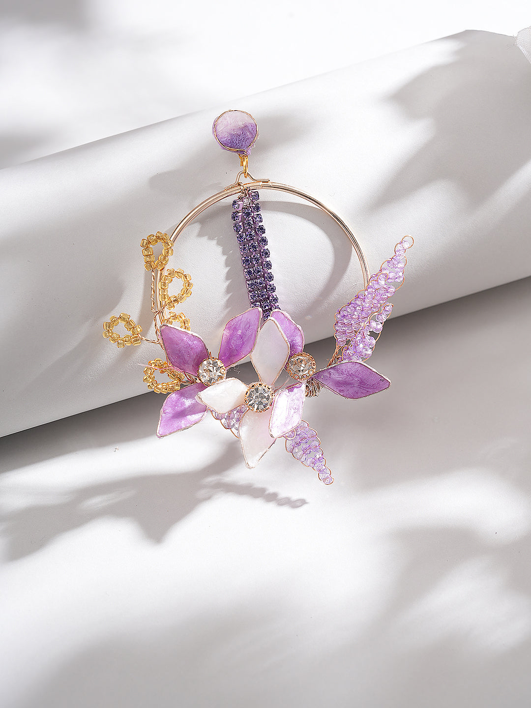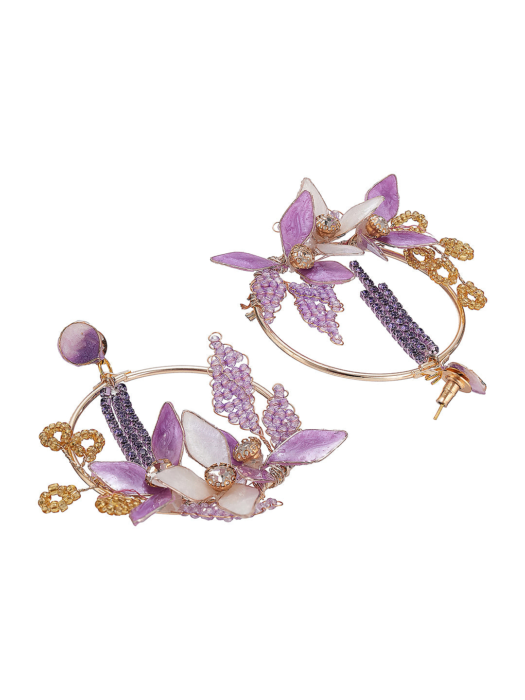 Featuring beautifully crafted floral motifs enhanced with soft lavender enamel, these danglers exude artistic elegance and modern style. Perfect for parties, festive occasions, ceremonies, or casual outings, their lightweight design ensures comfort while making a bold statement.