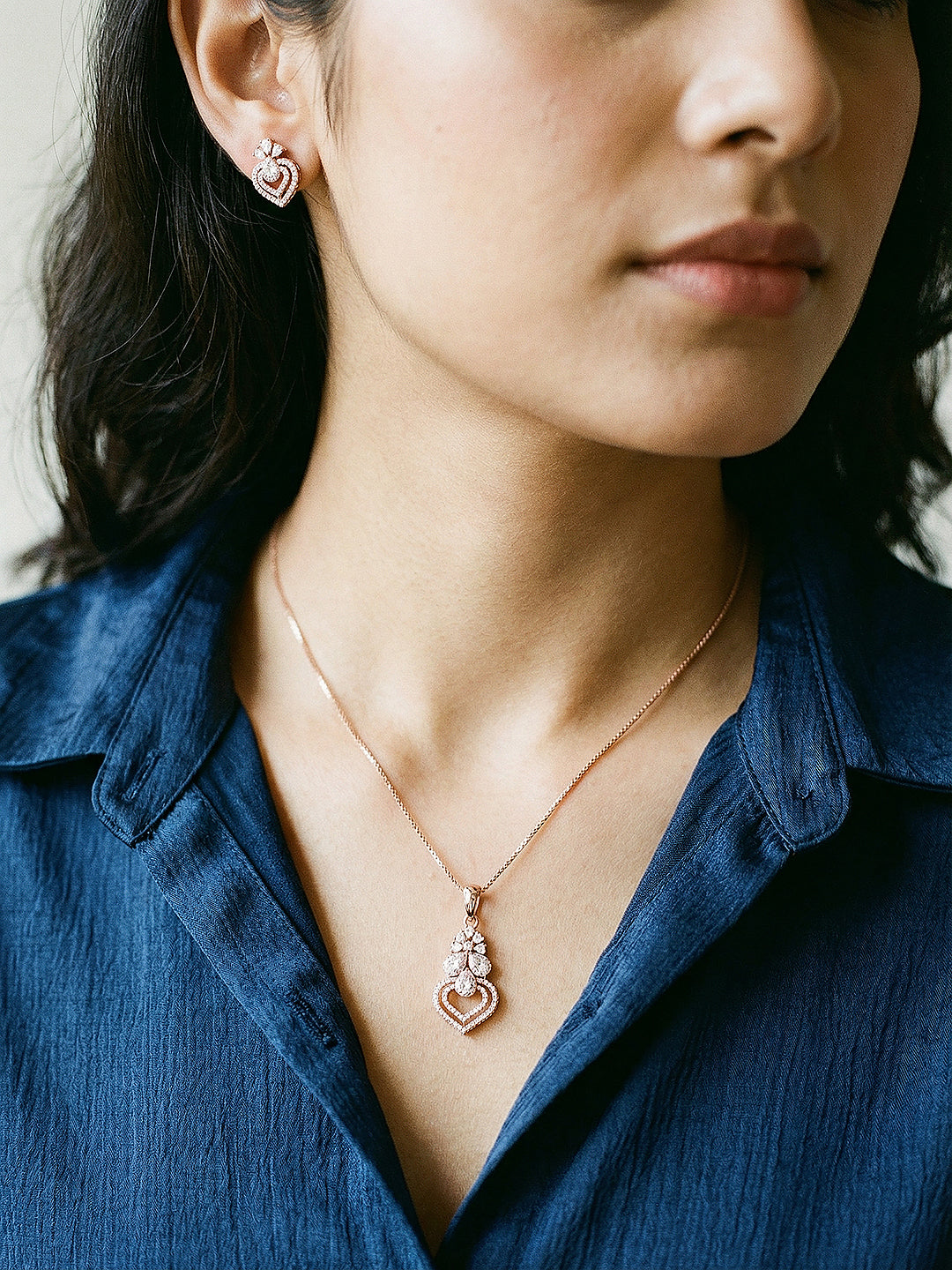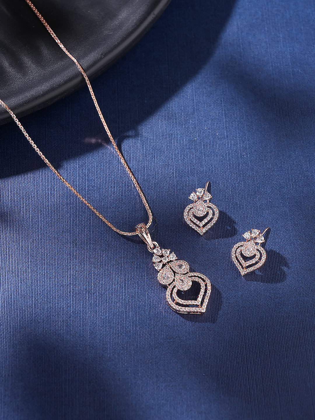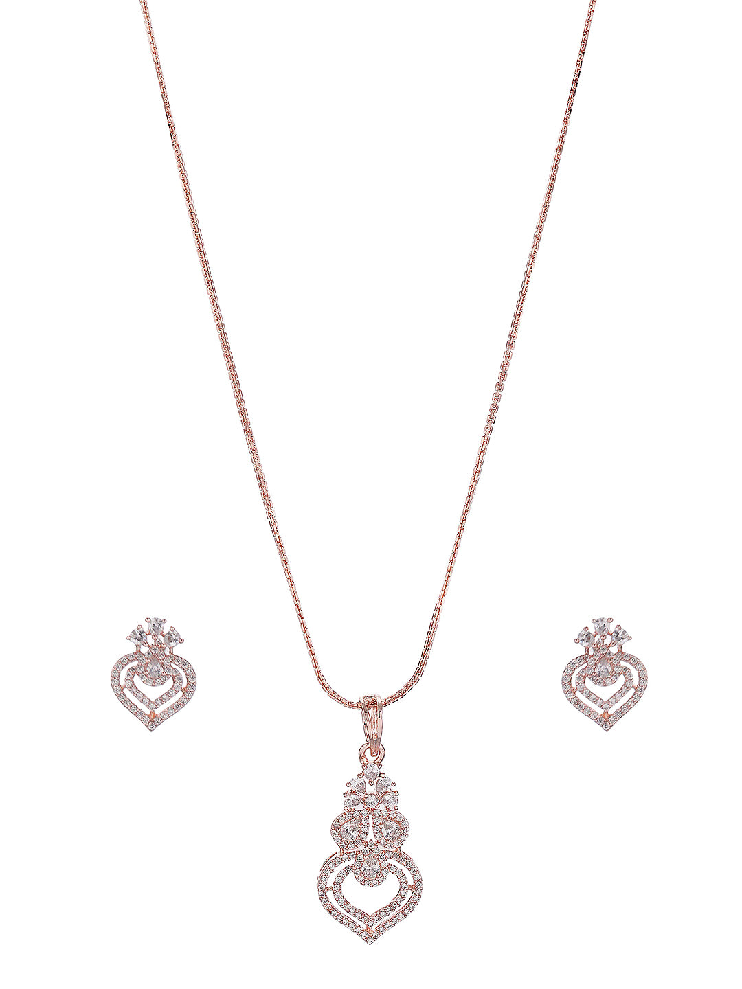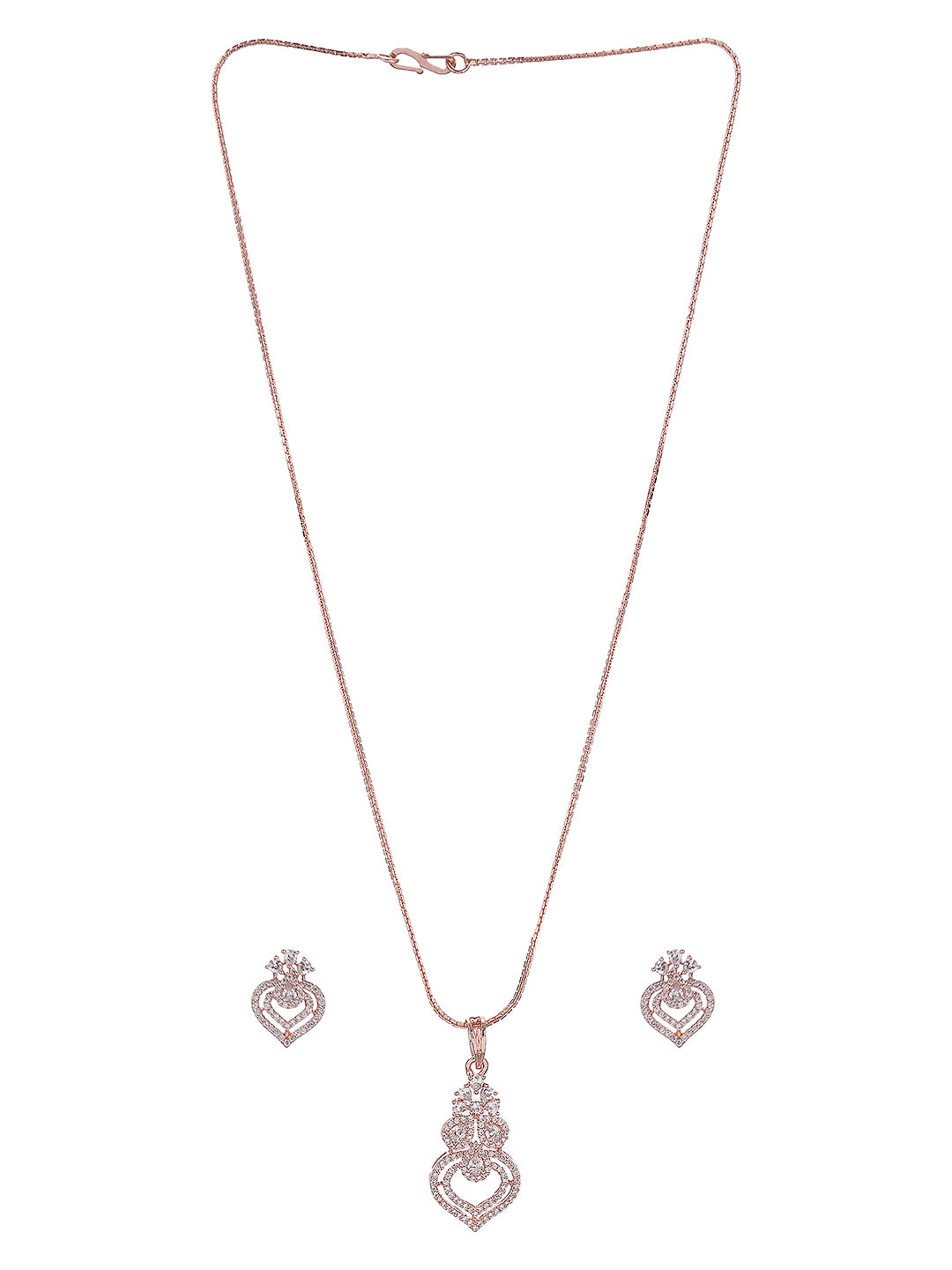 Rose Toned AD Zircon Studed Delicate Minimal Floral Pendant Jewellery Set