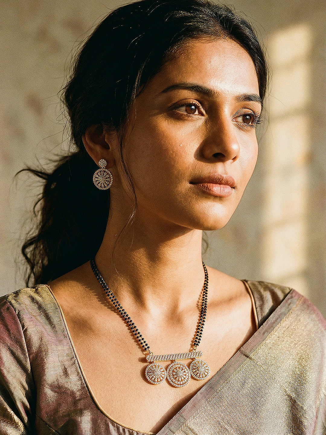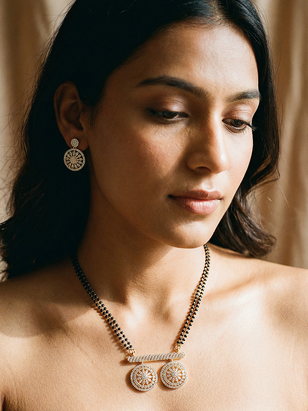 Set Contains: Mangalsutra Chain with Pendant + Matching Earrings